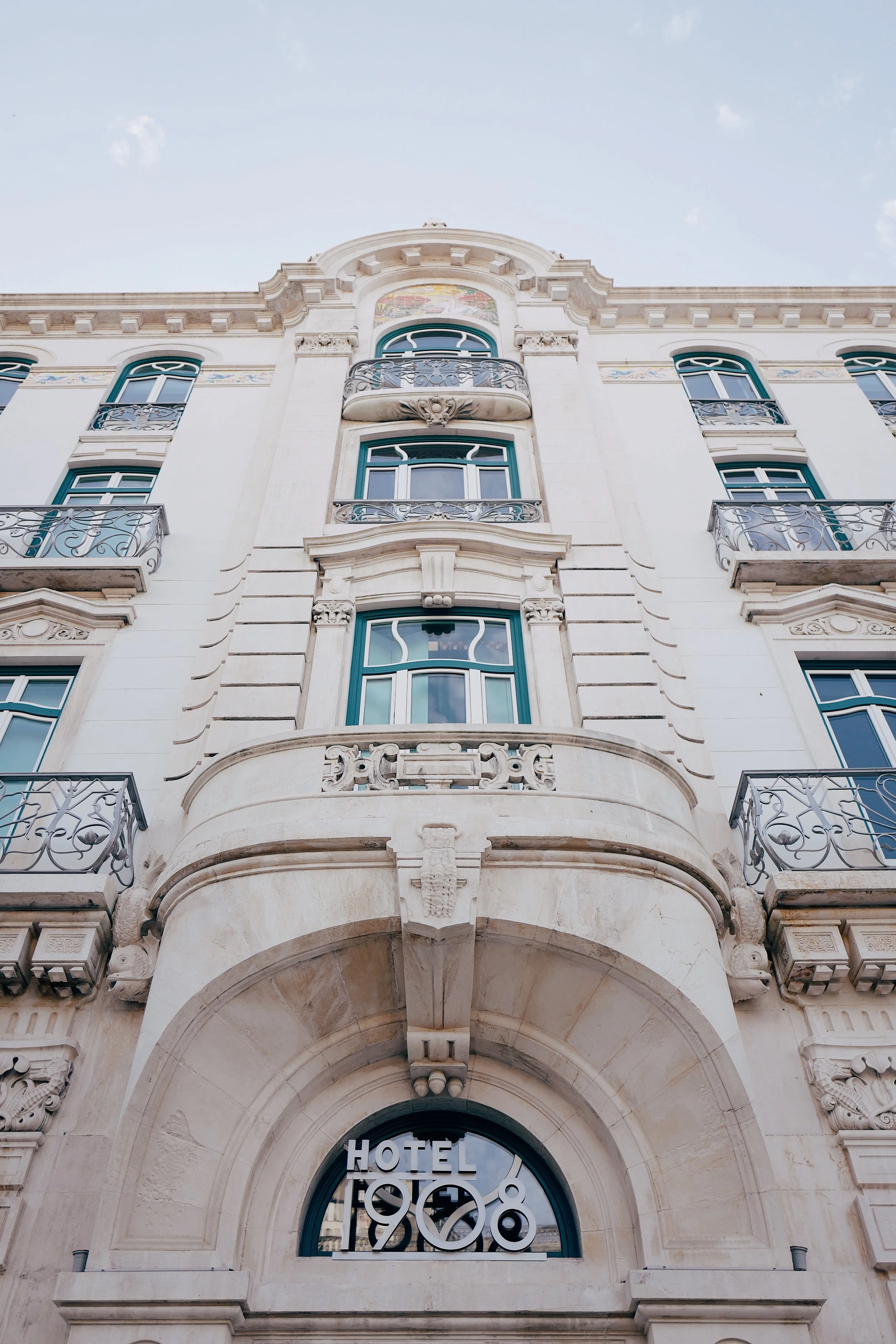 O 1908 fica num edifício emblemático do início do século XX. Apesar da profunda renovação a que foi sujeito, a fachada original manteve-se intacta, preservando assim a traça do arquitecto Adães Bermudes. O hotel conjuga na perfeição o antigo com o moderno. Enquanto no exterior se preserva o valor histórico do edifício, por dentro a presença da arte contemporânea não passa desapercebida. Prova disso mesmo são as instalações de Bordado II, imponentes e arrojadas, expostas na recepção e no bar.